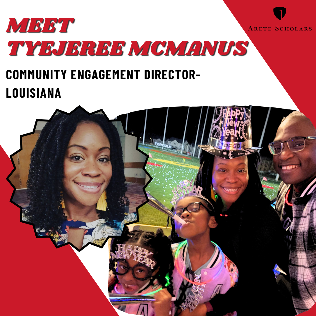 Meet Tyejeree, Arete’s Community Engagement Director for Louisiana. In her role, she helps strengthen the Arete Scholars community by creating meaningful moments that bring people together. Her warm presence and genuine care make families feel welcomed, supported, and truly connected.